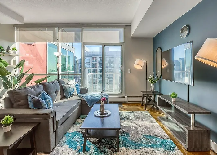 La propriété Cozy 2Br Condo With King Bed And City Views fournit une cuisine équipée, équipée d'un four et d'un lave-vaisselle. L'aéroport le plus proche est de Calgary, à 20 km de cet immeuble, et l'arrêt de bus 4 Street & 14 Avenue SW est à seulement 150 mètres.